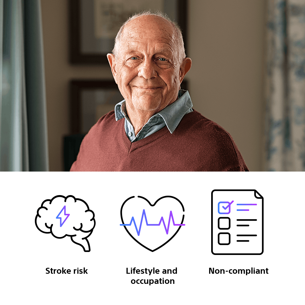 This patient struggles with OAC compliance but is at risk for stroke and is therefore appropriate to consider for WATCHMAN™