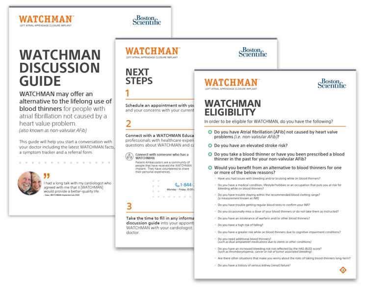 WATCHMAN Education Specialists are trained professionals with healthcare experience. They're here to help answer your questions and make sure you have all the information you need to talk to your doctor.